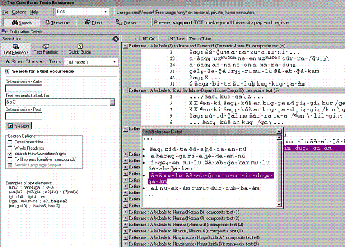 This is the only (2005) Text Engine that searches both textual references and text parallels. It can also search transliterated text for sign sequences, regardless of the way in which signs are transliterated!